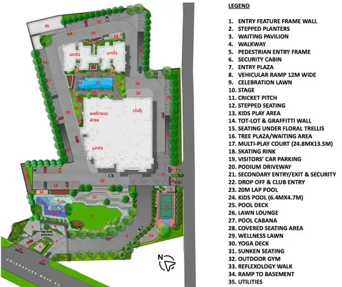 Amenities: Sattva Forest Ridge offers a world-class 30,000 Sq. Ft. Clubhouse & 30+ Modern Lifestyle Amenities including Large Swimming Pool, Multipurpose Court, Children's Play Area, Outdoor Gym, Multipurpose Halls, Games Room, Gym, Cricket Pitch, Skating Rink, Yoga Deck, Reflexology Walk, Tree Plaza, Sunken Seating, Celebration Lawn, Seating under a Floral Trellis & more.
