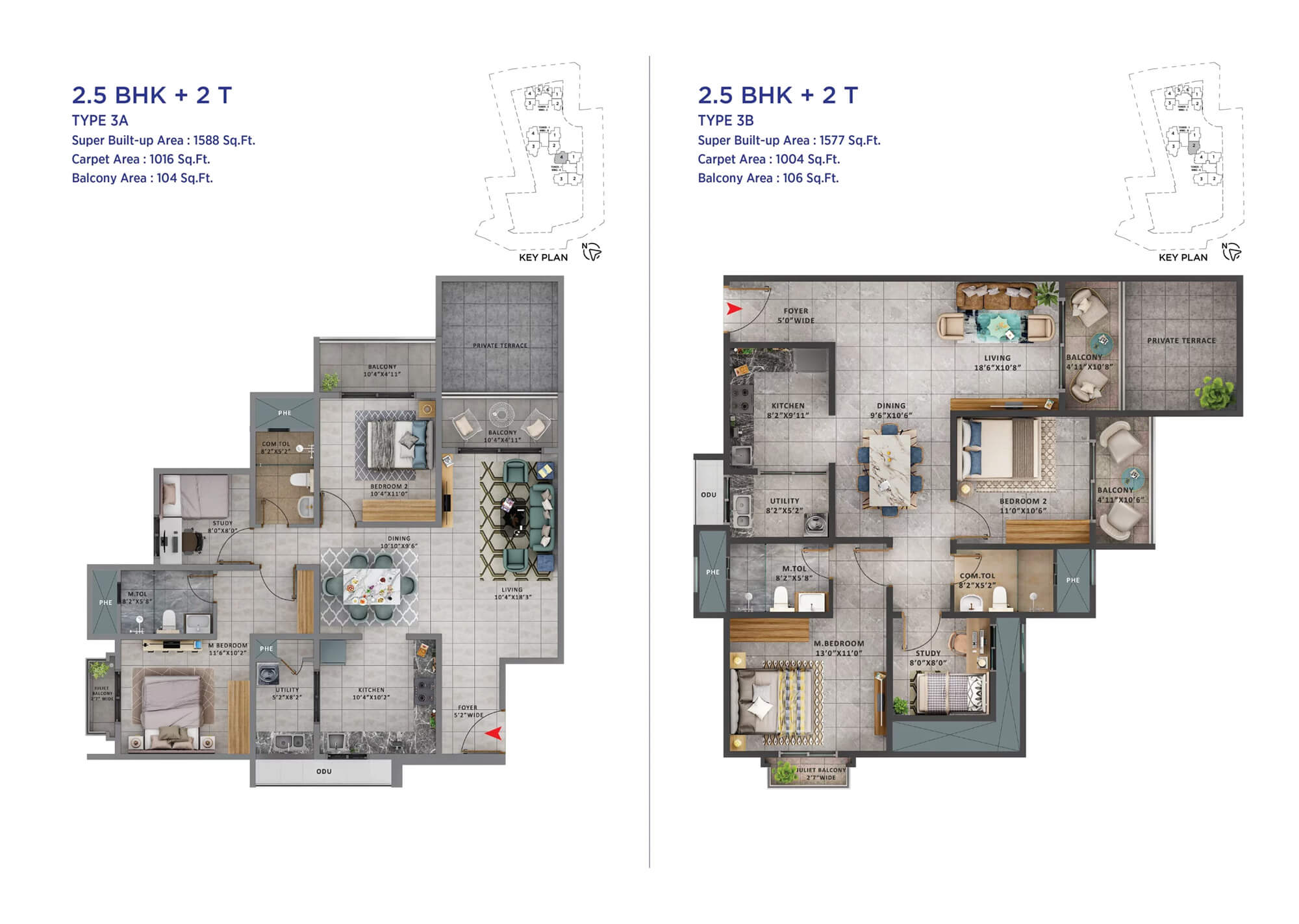 The project offers 1, 2, 2.5 and 3 BHK apartments with thoughtfully planned layouts.