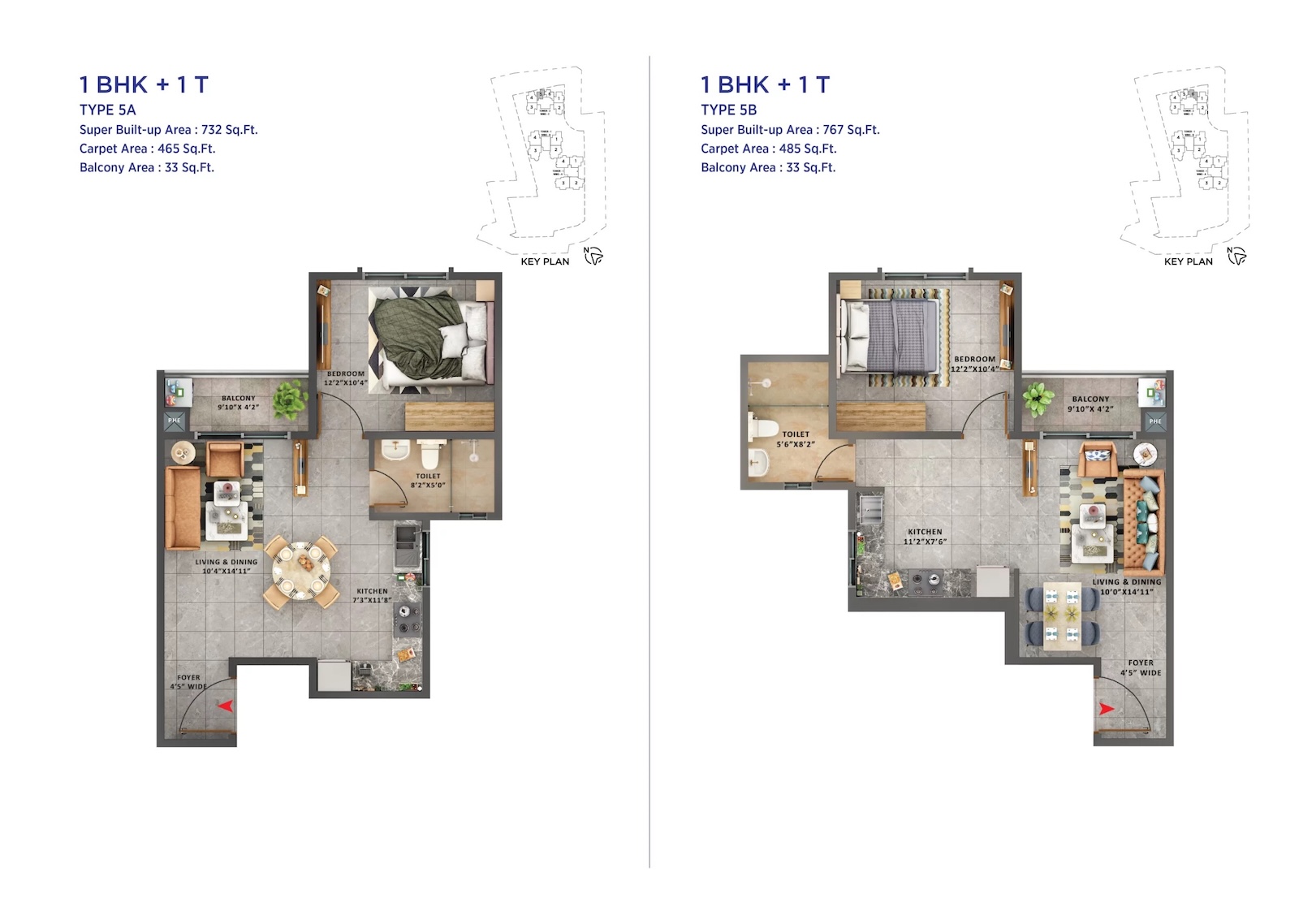 These cozy 1BHK apartments range from 782 to 767 Sqft, ideal for singles or small families.