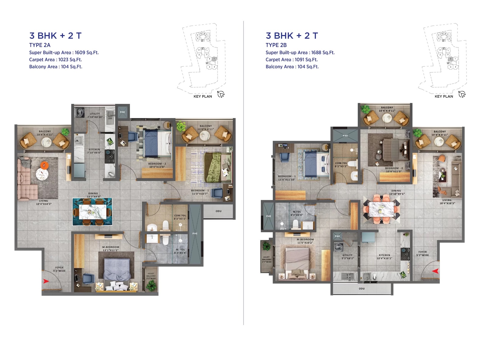 Spacious 3BHK units range from 1616 to 1864 Sqft, perfect for families needing extra room.